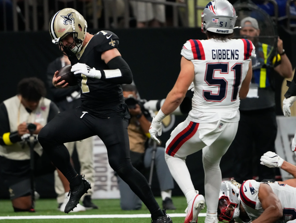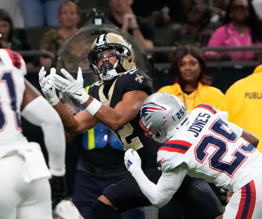 Taysom Hill teve uma corrida de 1 jarda no primeiro tempo para o único touchdown da equipe, no início do segundo quarto, e os Saints passaram à frente no momento seguinte, com mais um field goal já nos dois minutos finais do primeiro tempo. Só que com 1:39 sobrando, os Patriots anotaram mais um touchdown, e nem para o intervalo os Saints foram ganhando. De novo.