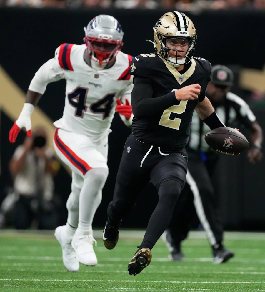 Spencer Rattler teve sua pior atuação com a camisa dos Saints, provavelmente. Ao total foram quatro interceptações sofridas, inclusive uma na primeira campanha do jogo que já mostrava que Dennis Allen tinha um plano para anular o ataque dos Saints. E funcionou por quase todo o tempo. A defesa dos Saints ficou quase 78% do primeiro tempo em campo, o que significa que o ataque foi uma piada sem graça.