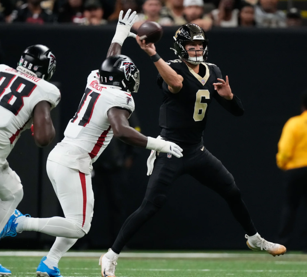 O pesadelo de Spencer Rattler, que começou na derrota (26 a 14) para o Chicago Bears, só se aprofundou no jogo contra o Tampa Bay Buccaneers (derrota por 23 a 3), em casa, culminando em sua substituição ao longo do jogo e na nomeação do calouro Tyler Shough (repita comigo: “Xó”) como quarterback titular.